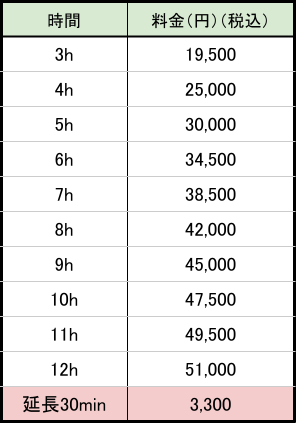 - ※当日申請の延長は、ご予約状況によってはお受けできない可能性があります。